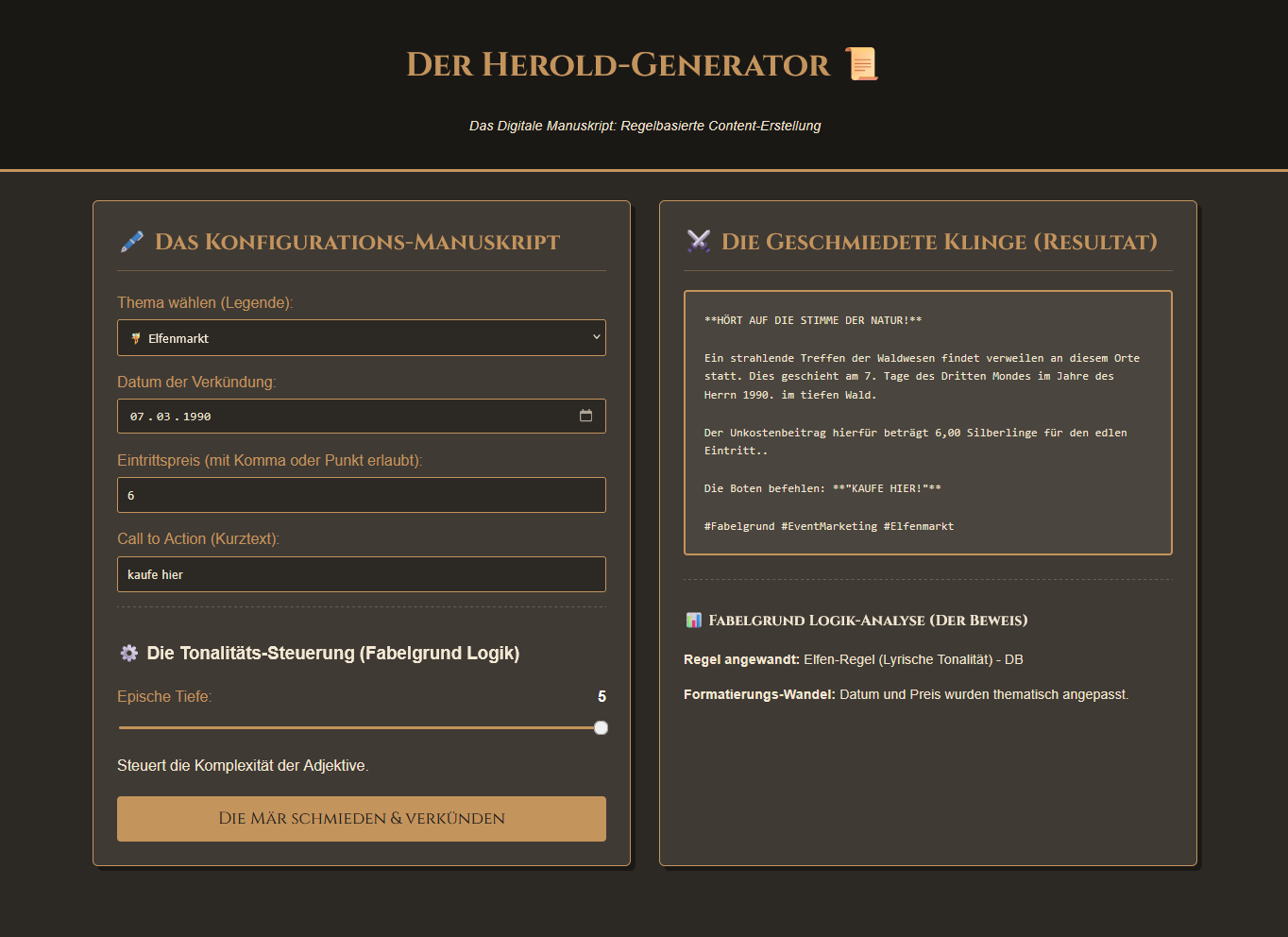 Unser Generator demonstriert die Fähigkeit, nicht nur den Haupttext, sondern auch SEO/Social-Media-Assets dynamisch zu steuern. Wenn wir die ‚Epische Tiefe‘ hochstellen, wählt das System automatisch die passenderen, nischigeren Hashtags aus der Datenbank. Dies simuliert das, was in der Realität eine Echtzeit-Analyse tun würde, und liefert Content, der sofort bereit für die Veröffentlichung ist.