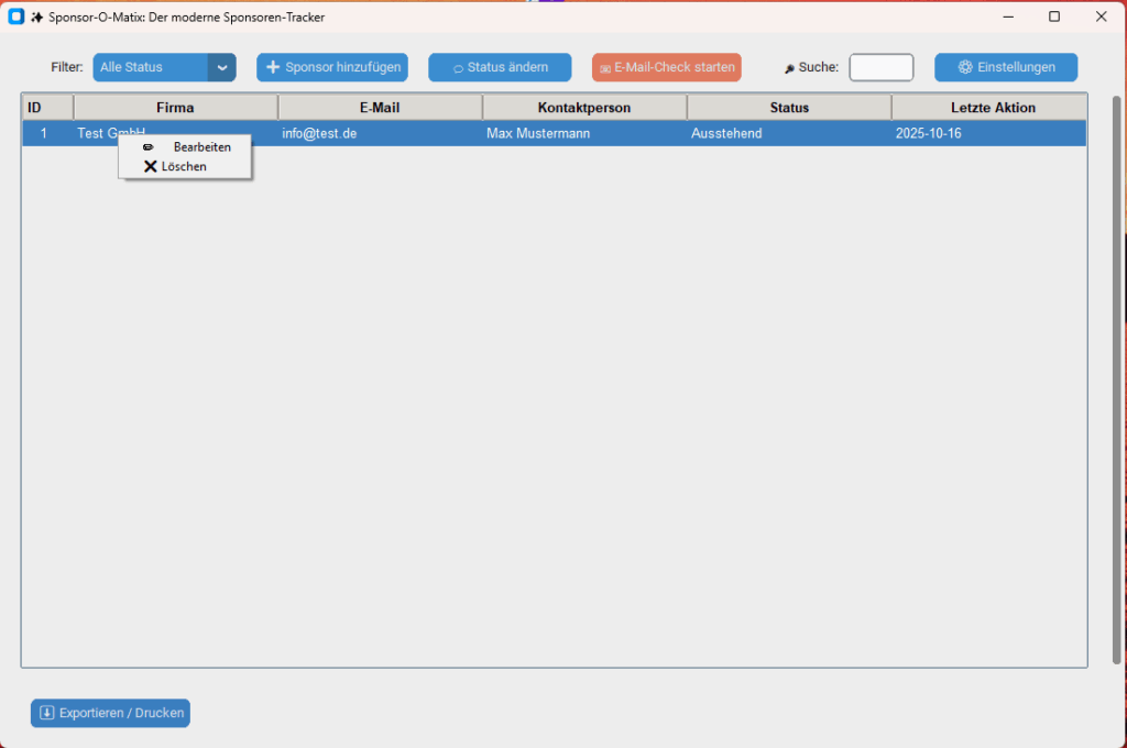 Mit Sponsor-O-Matrix verwalten sie ihre Arbeit in der Sponsor und Spendensuche. Egal ob Verein, Firma, Projekt oder eine einfache Initiative. Mit dieser Light Anwendung können sie für kleines Geld ihre Arbeit erleichtern.